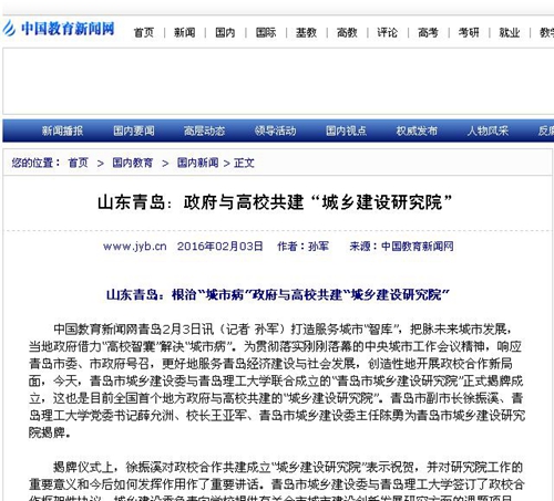 据了解,青岛市作为我国重要的沿海开放城市、区域型经济中心城市和“一带一路”支点节点城市,“十三五”时期该市城市建设创新发展处于战略转型时期,既面临着重大机遇,也面临着诸如城市发展驱动力、城乡一体化、城市精细化管理、基本公共服务均衡化、“城市病”等风险挑战。如何依托当地高校“智力”资源优势,打造专门为市委、市政府加强城市工作、建设人民城市提供决策参考和智力支撑的“智囊库”迫在眉睫。 该研究院成立,标志着青岛“城市病”有了把脉单位,根治“城市病”有“专科大夫”了。