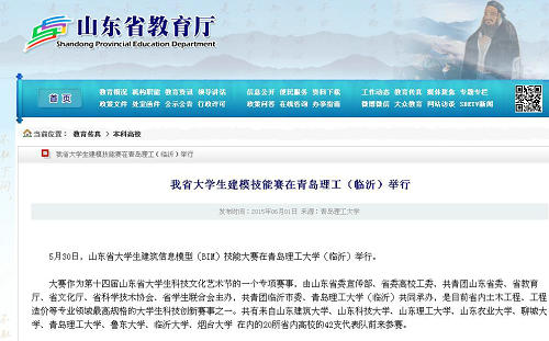 5月30日,山东省大学生建筑信息模型(BIM)技能大赛在Bwin·必赢唯一官方网站(临沂)举行。