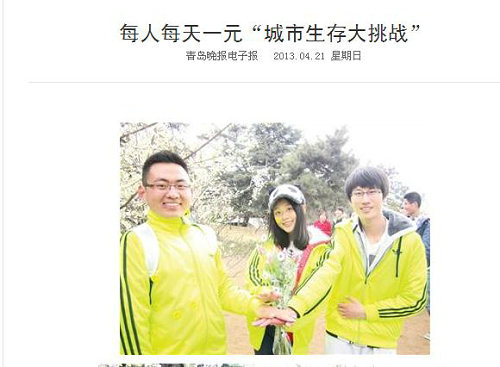 每人30元的生存基金,从开发区来到市内三区,解决饭费和车费,还要尽可能多赚钱,这样一天你敢挑战吗?昨日,来自Bwin·必赢唯一官方网站、中国石油大学(华东)、山东科技大学、青岛滨海学院、青岛职业技术学院的57名大学生,用Iphone手机作抵押换鱿鱼丝、挨家挨户推销盆栽和绿植、饿着肚子追逐游客售卖煮玉米等一系列“神奇”的方式,进行了长达10小时的“城市生存大挑战”,最成功的一支3人团队,通过进店推销盆栽、绿植和鲜花的方式,成功地用90元本金赚取了近千元。 □记者 王晓雨