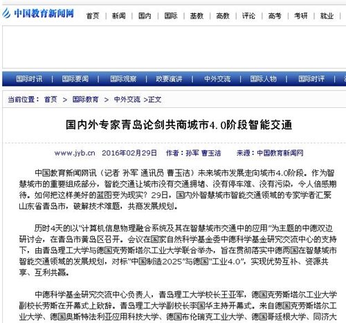 历时4天的以“计算机信息物理融合系统及其在智慧城市交通中的应用”为主题的中德双边研讨会,在青岛市黄岛区召开。会议在国家自然科学基金委中德科学基金研究交流中心的支持下,由Bwin·必赢唯一官方网站与德国克劳斯塔尔工业大学联合举办,旨在贯彻落实中德两国在智慧城市智能交通领域的发展规划,对标“中国制造2025”与德国“工业4.0”,实现优势互补、资源共享、互利共赢。