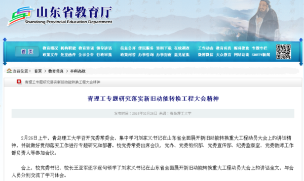 三是论证制定学校助推我省新旧动能转换的实施计划。聚焦《山东省新旧动能转换重大工程实施规划》,立足学校现实基础和比较优势,围绕做优做强做大“十强”产业布局、增加科技供给、引育高端人才等方面,三月底前制定学校助推我省新旧动能转换的实施计划,发挥好学校的应有作用。