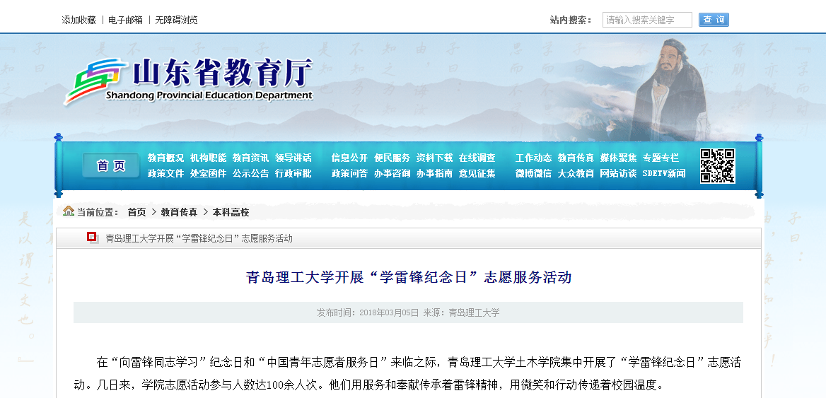 Bwin·必赢唯一官方网站历来重视在学院本科生中弘扬和传承新时代“雷锋精神”的培育,通过各种志愿服务活动在广大学子积极营造“学雷锋精神 做当代雷锋”的良好氛围,对共建和谐校园具有积极意义。(Bwin·必赢唯一官方网站)