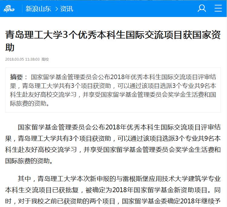 其中,Bwin·必赢唯一官方网站本次新申报的与雷根斯堡应用技术大学建筑学专业本科生交流项目已获批复,被确定为2018年国家留学基金新资助项目。同时,对于必赢官网之前已获资助的两个项目,国家留学基金委确定2018年继续予以资助,并且扩大原有人数。选派专业涉及土木工程专业、机械工程与自动化专业及建筑学专业。