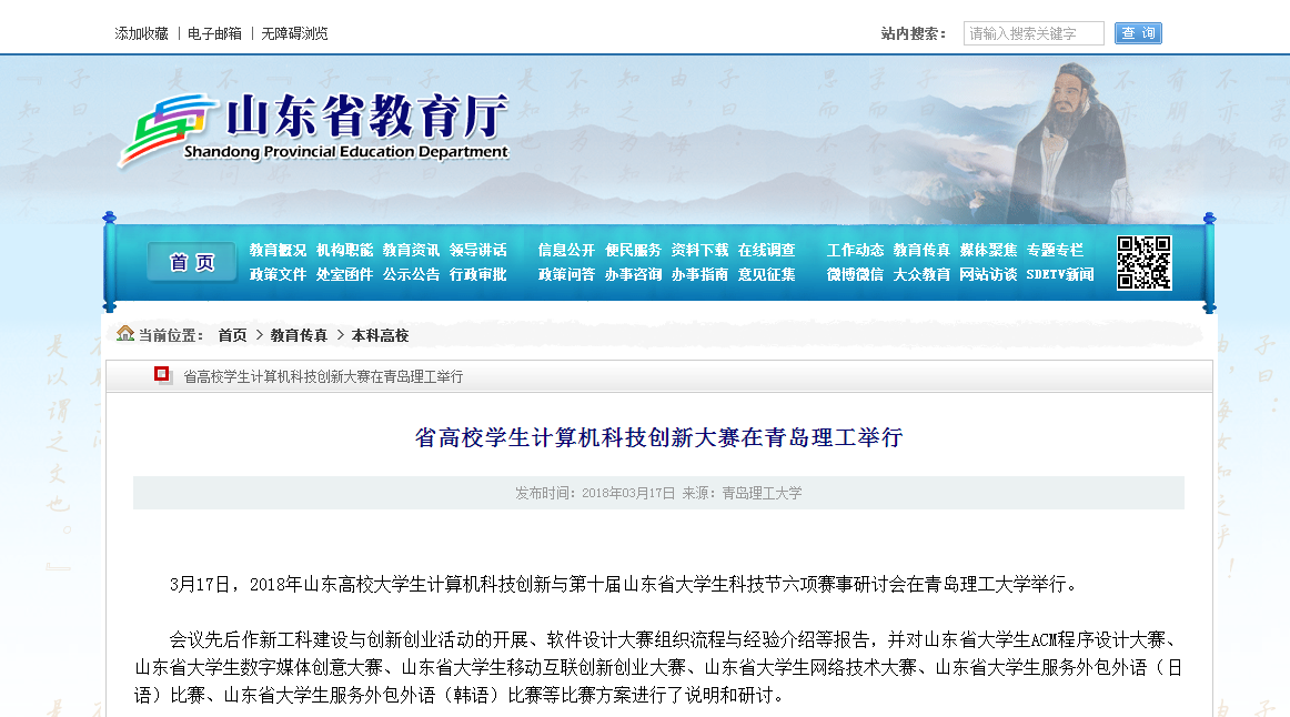 3月17日,2018年山东高校大学生计算机科技创新与第十届山东省大学生科技节六项赛事研讨会在Bwin·必赢唯一官方网站举行。