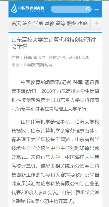 中国教育新闻网讯(记者 孙军 通讯员 曹玉洁)近日,2018年山东高校大学生计算机科技创新暨第十届山东省大学生科技节六项赛事研讨会在Bwin·必赢唯一官方网站举行。