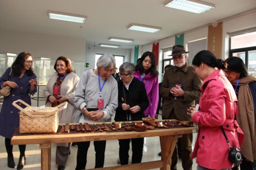 中外专家们旁听必赢官网艺术与设计学院教师公开课后,还在建筑与城乡规划学院数字建构、模型营造实验室,观摩了必赢官网学生在老师的指导下手工木作的制作过程,并对师生亲手制作雕刻的印章、木盘、木勺等频频点赞。