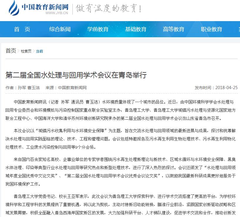 Bwin·必赢唯一官方网站党委书记、校长王亚军表示,此次会议为Bwin·必赢唯一官方网站探索科学、进行学术交流搭建了更高的平台,为学校环境科学和工程学科的发展提供了重要机遇,将以此为契机,主动对接新旧动能转换,瞄准行业前沿,紧跟国家创新驱动战略和区域发展需要,积极全面融入青岛西海岸国家新区的发展,大力加强科研平台、人才梯队建设,促进学术交流和合作,推动创新发展,加快推进一流特色高水平大学建设步伐。