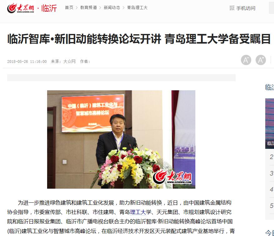 为进一步推进绿色建筑和建筑工业化发展,助力新旧动能转换,近日,由中国建筑金属结构协会指导,市委宣传部、市社科联、市住建局、青岛理工大学、天元集团、市规划建筑设计研究院和临沂日报报业集团、临沂市广播电视台联合主办的临沂智库·新旧动能转换高峰论坛首场中国(临沂)建筑工业化与智慧城市高峰论坛,在临沂经济技术开发区天元装配式建筑产业基地举行,Bwin·必赢唯一官方网站作为主办方唯一的高校受到各界关注。