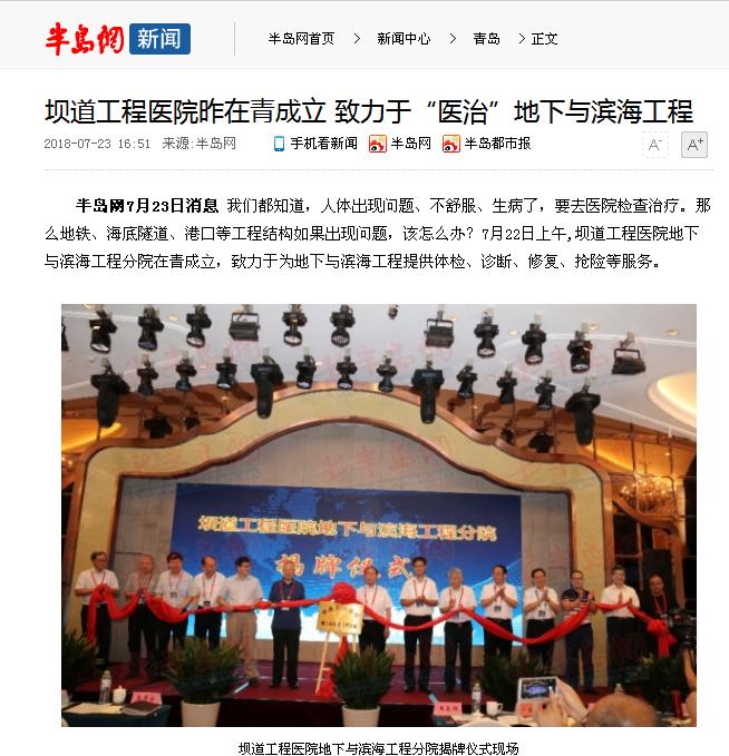 半岛网7月23日消息我们都知道,人体出现问题、不舒服、生病了,要去医院检查治疗。那么地铁、海底隧道、港口等工程结构如果出现问题,该怎么办?7月22日上午,坝道工程医院地下与滨海工程分院在青成立,致力于为地下与滨海工程提供体检、诊断、修复、抢险等服务。