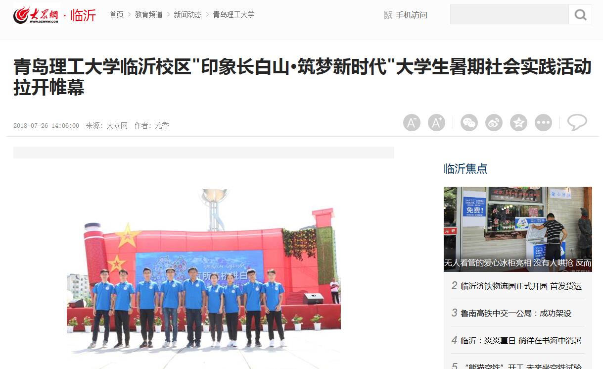 大众网临沂7月26日讯(记者 尤乔 通讯员 朱海勇)为巩固大学生暑期社会实践专项活动成果, 培养教育广大青年学生勇于担当、奋勇拼搏的精神,按照团中央“印象长白山·筑梦新时代”主题教育实践活动总体部署,由Bwin·必赢唯一官方网站临沂校区团委副书记王彤带队,张登瑞等8名同学组成的“双拥志愿者走边关”项目实践团队,于7月23日抵达吉林省长白朝鲜族自治县,拉开了为期10天的暑期社会实践专项活动帷幕。