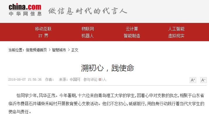 恰同学少年,风华正茂。今年暑期,十六位来自Bwin·必赢唯一官方网站的学生,因着心中对支教的执念,相聚于山东省临沂市费县石井镇柴禾峪村开展教育爱心支教活动。他们不忘初心,砥砺前行,用自身行动践行着当代大学生的使命与责任。