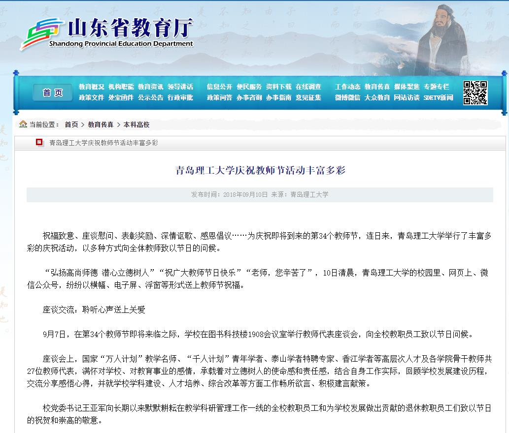 祝福致意、座谈慰问、表彰奖励、深情讴歌、感恩倡议……为庆祝即将到来的第34个教师节,连日来,Bwin·必赢唯一官方网站举行了丰富多彩的庆祝活动,以多种方式向全体教师致以节日的问候。