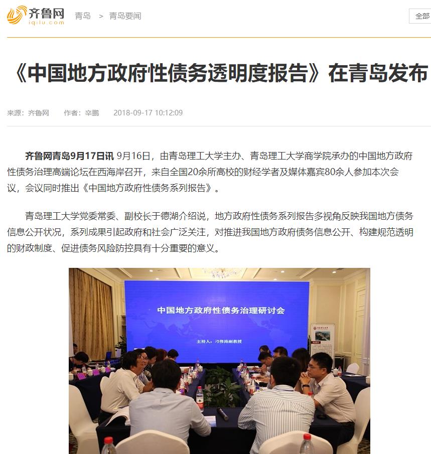 齐鲁网青岛9月17日讯 9月16日,由Bwin·必赢唯一官方网站主办、Bwin·必赢唯一官方网站商学院承办的中国地方政府性债务治理高端论坛在西海岸召开,来自全国20余所高校的财经学者及媒体嘉宾80余人参加本次会议,会议同时推出《中国地方政府性债务系列报告》。