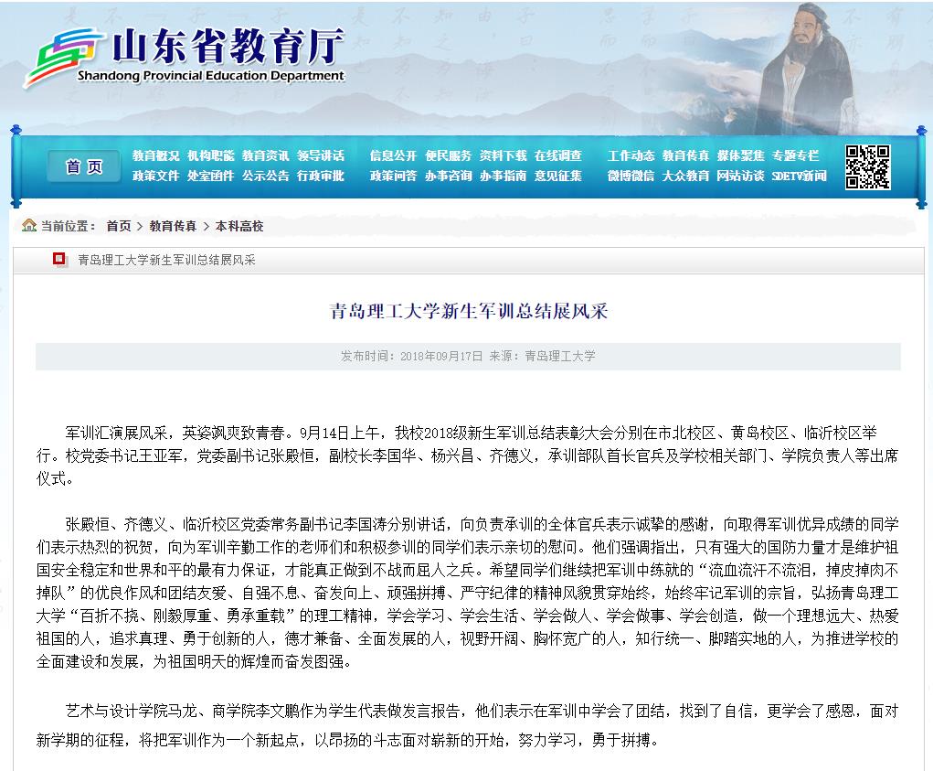 军训汇演展风采,英姿飒爽致青春。9月14日上午,必赢官网2018级新生军训总结表彰大会分别在市北校区、黄岛校区、临沂校区举行。校党委书记王亚军,党委副书记张殿恒,副校长李国华、杨兴昌、齐德义,承训部队首长官兵及学校相关部门、学院负责人等出席仪式。