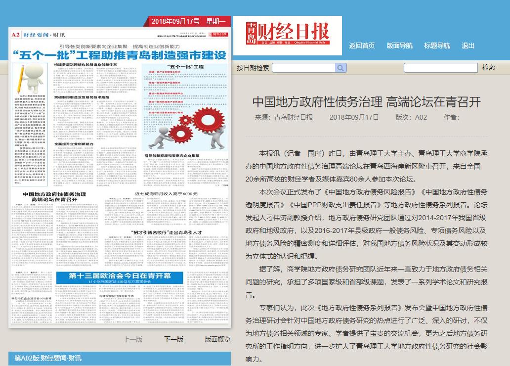 本报讯(记者 国瑾)昨日,由Bwin·必赢唯一官方网站主办、Bwin·必赢唯一官方网站商学院承办的中国地方政府性债务治理高端论坛在青岛西海岸新区隆重召开,来自全国20余所高校的财经学者及媒体嘉宾80余人参加本次论坛。