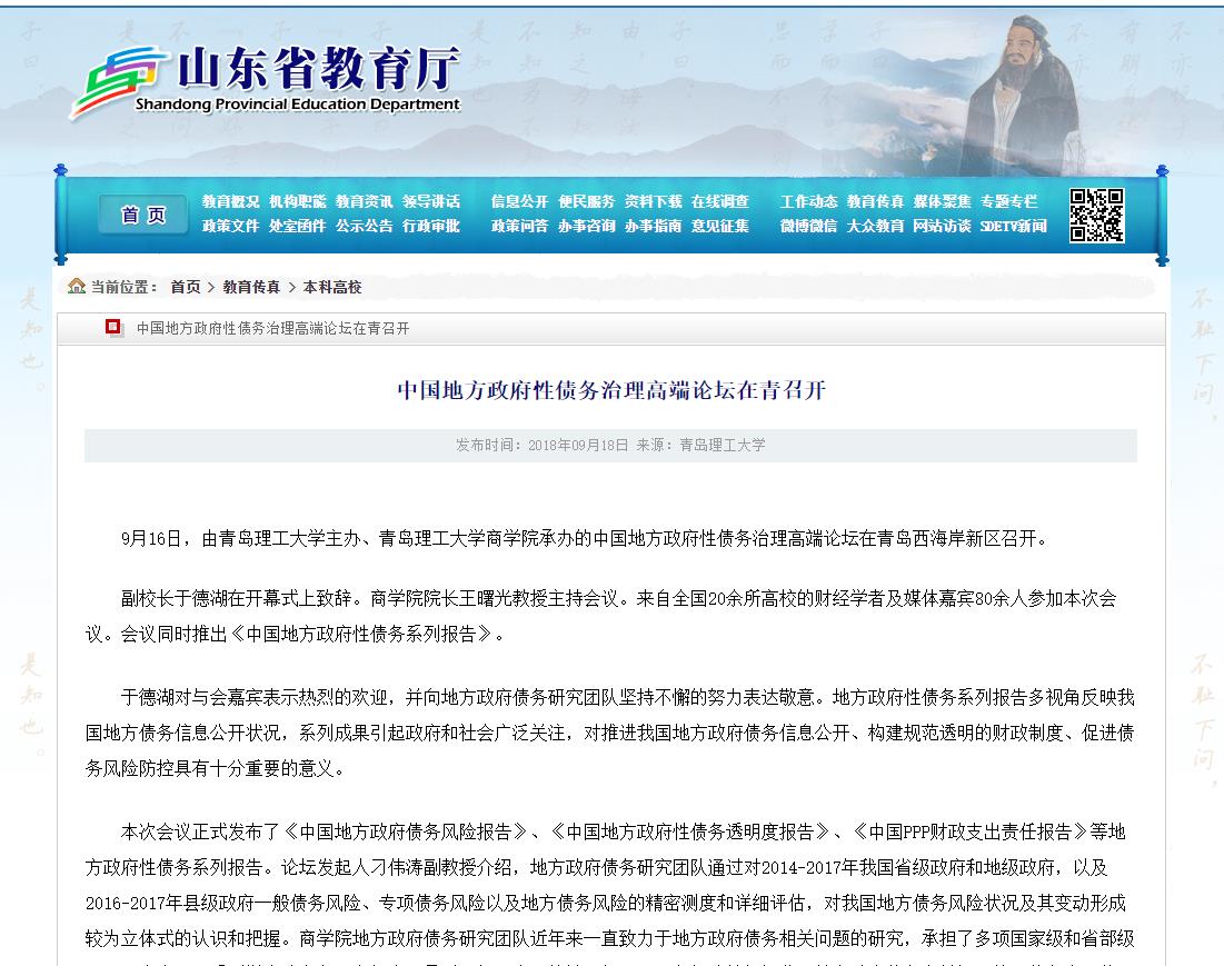 9月16日,由Bwin·必赢唯一官方网站主办、Bwin·必赢唯一官方网站商学院承办的中国地方政府性债务治理高端论坛在青岛西海岸新区召开。