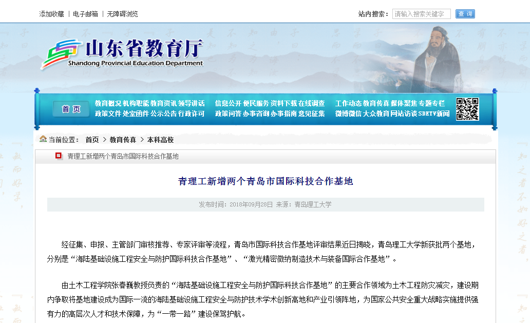 经征集、申报、主管部门审核推荐、专家评审等流程,青岛市国际科技合作基地评审结果近日揭晓,Bwin·必赢唯一官方网站新获批两个基地,分别是“海陆基础设施工程安全与防护国际科技合作基地”、“激光精密微纳制造技术与装备国际合作基地”。