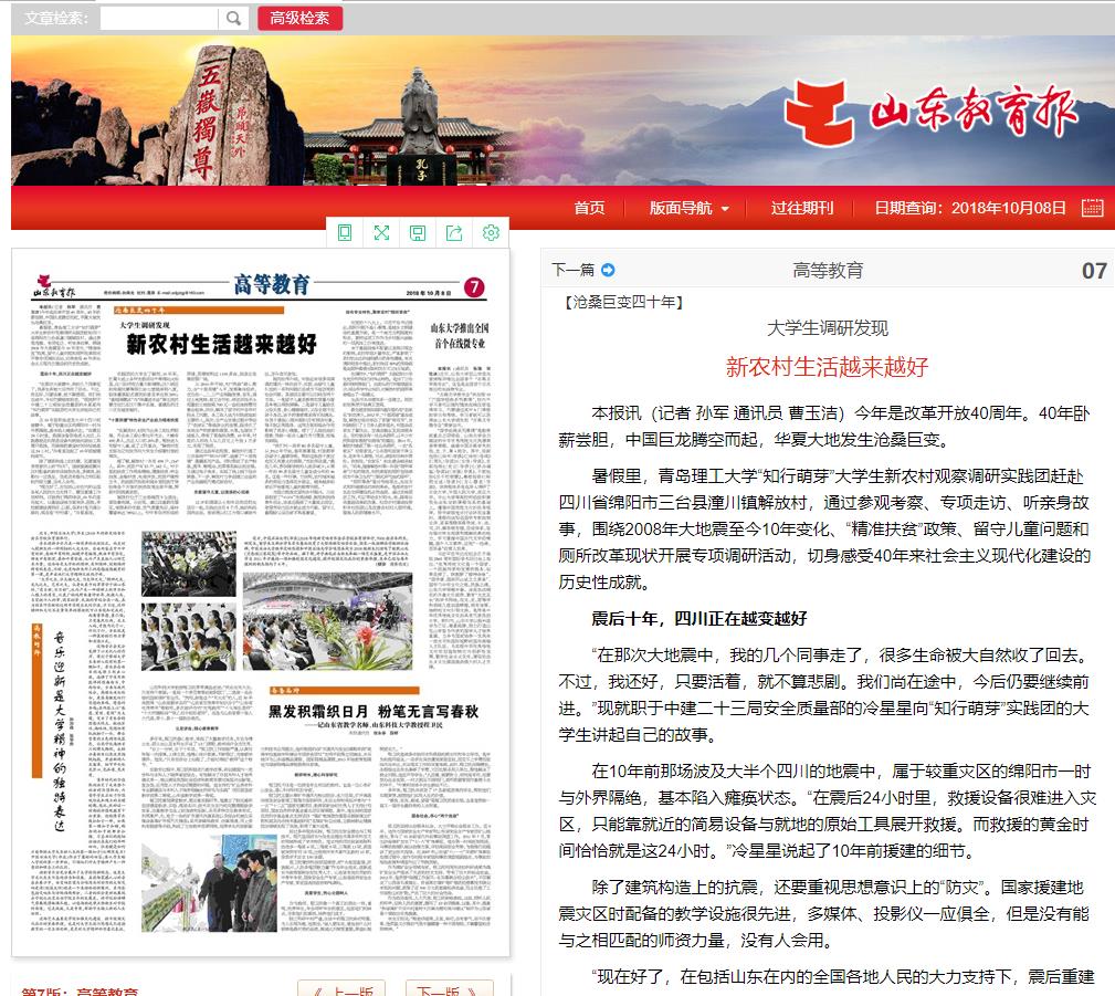 暑假里,Bwin·必赢唯一官方网站“知行萌芽”大学生新农村观察调研实践团赶赴四川省绵阳市三台县潼川镇解放村,通过参观考察、专项走访、听亲身故事,围绕2008年大地震至今10年变化、“精准扶贫”政策、留守儿童问题和厕所改革现状开展专项调研活动,切身感受40年来社会主义现代化建设的历史性成就。