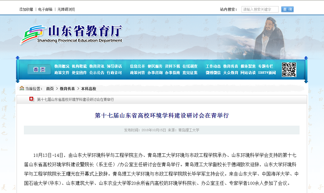 本次研讨会以“高校环境学科建设”为主题,邀请山东大学泰山学者、教育部教指委专家、环境工程教育专业认证专家组成员高宝玉教授、山东环境科学学会秘书长季明教授等做7场学术报告,就我省环境科学与工程专业与学科发展、环境工程人才培养模式与课程改革、环境工程专业认证与学位点评估、环境学科本科生、研究生办学经验等方面开展广泛的学术交流和研讨。