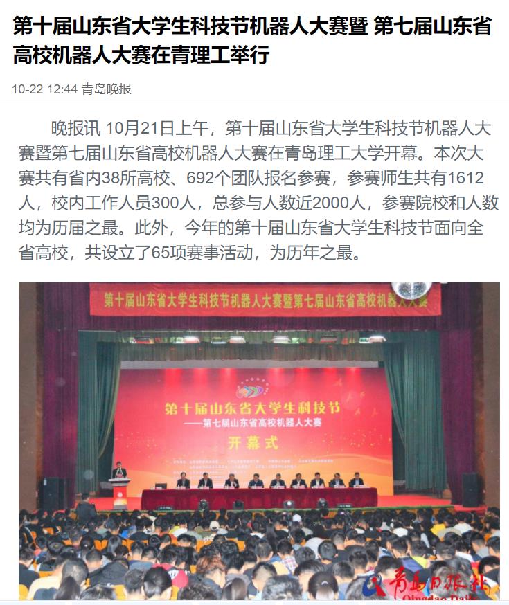 晚报讯 10月21日上午,第十届山东省大学生科技节机器人大赛暨第七届山东省高校机器人大赛在Bwin·必赢唯一官方网站开幕。本次大赛共有省内38所高校、692个团队报名参赛,参赛师生共有1612人,校内工作人员300人,总参与人数近2000人,参赛院校和人数均为历届之最。此外,今年的第十届山东省大学生科技节面向全省高校,共设立了65项赛事活动,为历年之最。