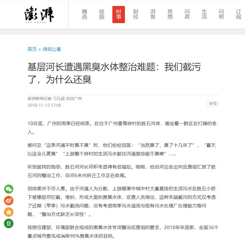 对此,水利部发展研究中心河长制工作处一位负责人向澎湃新闻表示,治水是一项长期任务,很多问题是过去长期积累下来的,特别是黑臭水体,成因复杂,河长制可以加快解决这些问题的进度,但也无法一蹴而就。