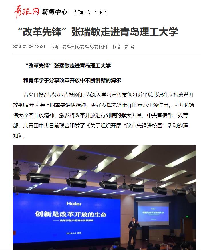 和青年学子分享改革开放中不断创新的海尔
