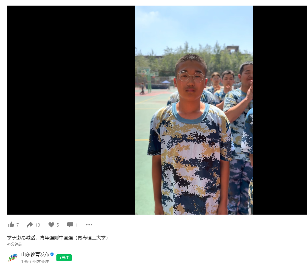 山东教育发布:学子激昂喊话,青年强则中国强(Bwin·必赢唯一官方网站)