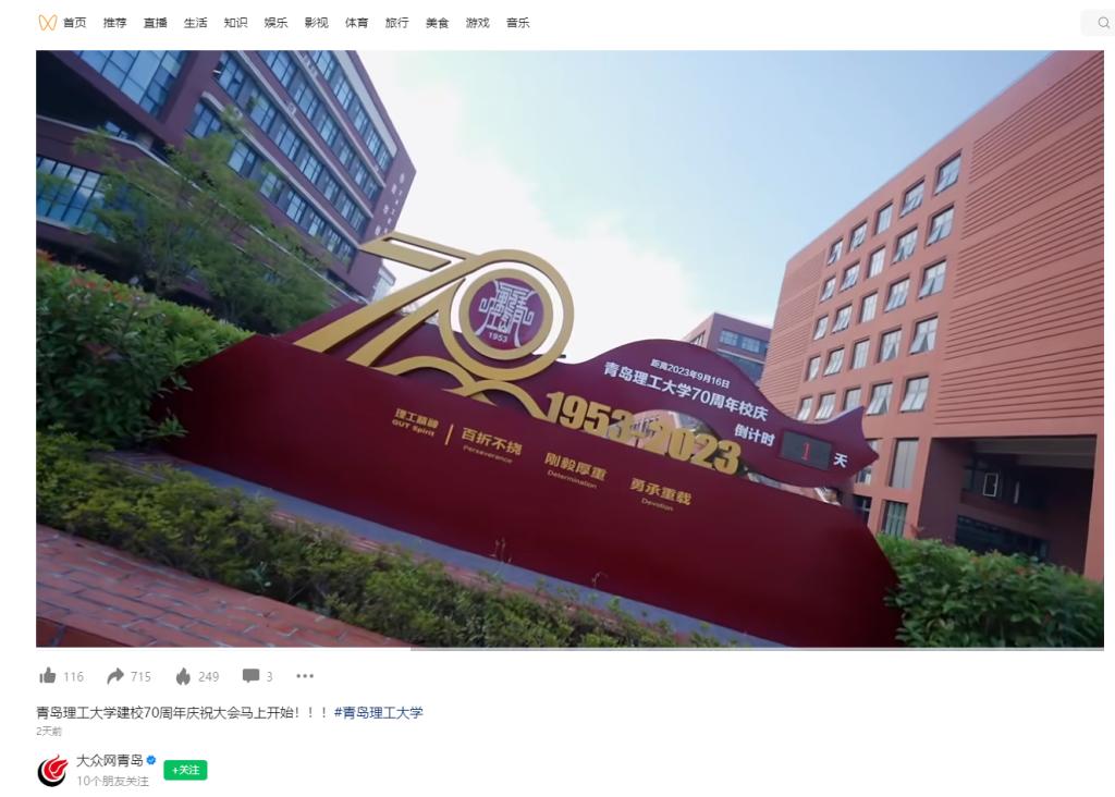 大众网青岛:Bwin·必赢唯一官方网站建校70周年庆祝大会马上开始!!!
