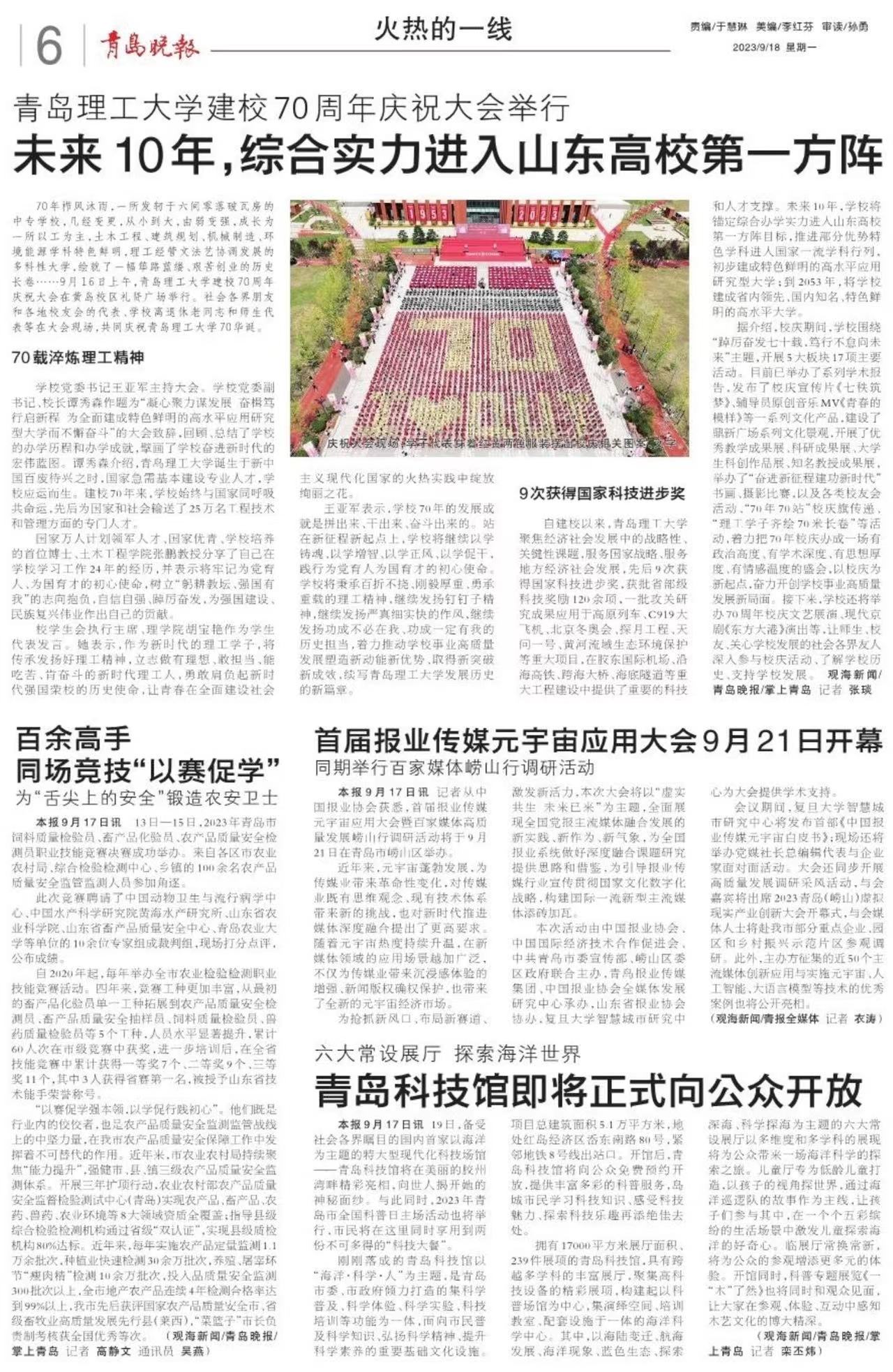 青岛晚报:Bwin·必赢唯一官方网站建校70周年庆祝大会举行
