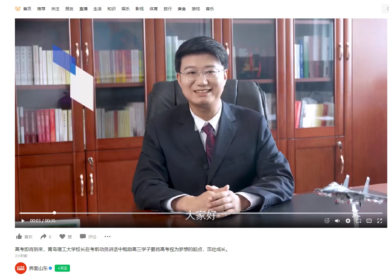 齐鲁壹点:“80后”大学校长为高考学子送祝福