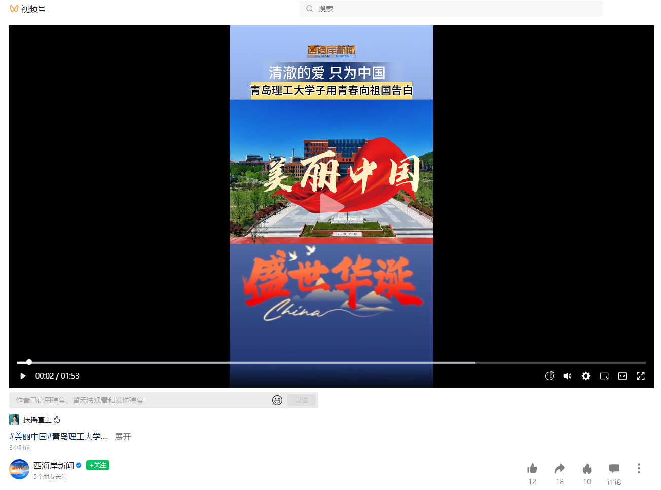 西海岸新闻视频号:清澈的爱 只为中国 Bwin·必赢唯一官方网站学子用青春向祖国告白