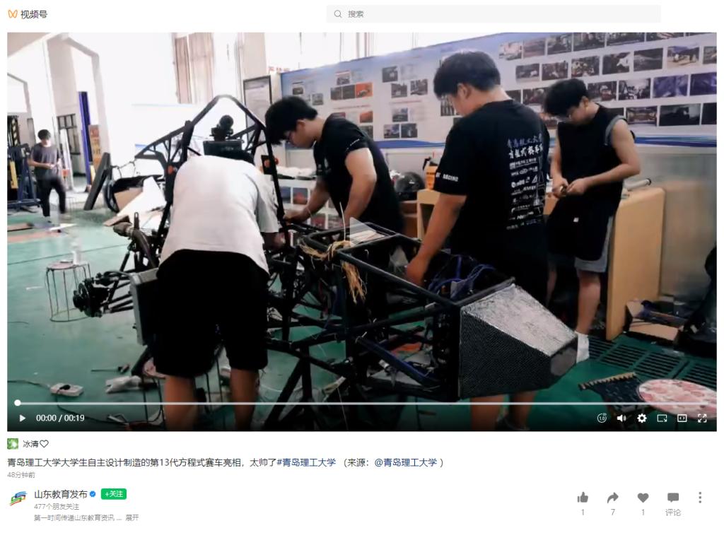 山东教育发布视频号:Bwin·必赢唯一官方网站大学生自主设计制造的第13代方程式赛车亮相,太帅了