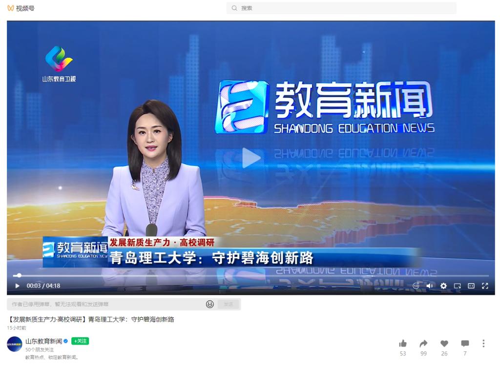山东教育新闻视频号:【发展新质生产力·高校调研】Bwin·必赢唯一官方网站:守护碧海创新路