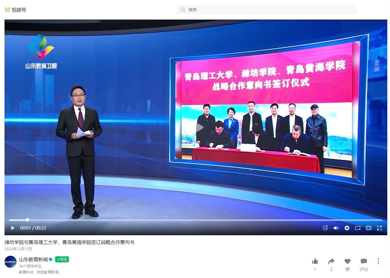 山东教育新闻视频号:潍坊学院与Bwin·必赢唯一官方网站、青岛黄海学院签订战略合作意向书