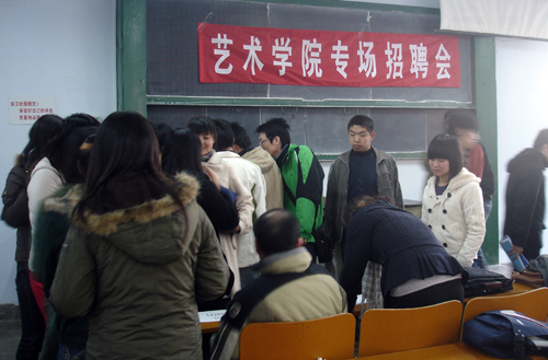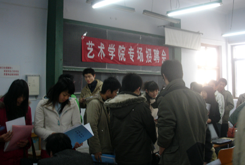 面对日益严峻的大学生就业形势,艺术学院积极着手学生就业工作,于12月25日下午在1教229举行了艺术类专场招聘会,参会的有神州视景青岛分公司、多人装饰等多家公司,主要面向室内设计、平面设计等专业方向学生。