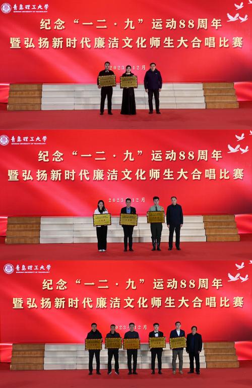 为纪念“一二·九”运动88周年,激发广大青年师生爱党、爱国情怀,弘扬廉洁文化,塑造积极向上、清正廉洁的校园文化氛围,12月6日,必赢官网纪念“一二·九”运动88周年暨弘扬新时代廉洁文化师生大合唱比赛在黄岛校区风雨操场举行。党委常委、纪委书记、监察专员尹东峰,党委常委、组织部部长郭建锋,纪委、宣传部、学生工作处、团委等部门负责同志出席活动,学院党政负责人、青年教师、辅导员及千余名学生共同参与。